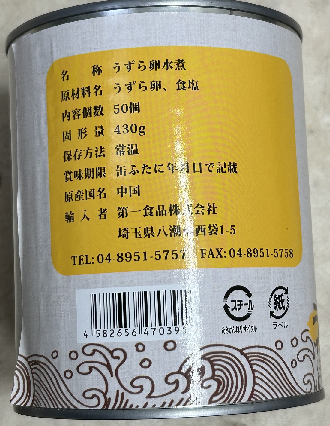 商品名 第一食品 うずらの卵水煮 中国産 50個入 1缶 430g